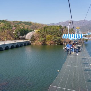 모노레일을 타고 올라가 전망대에서 호수를 내려다보거나, 곳곳에 설치된 대형 조각과 벽화를 감상할 수 있다.